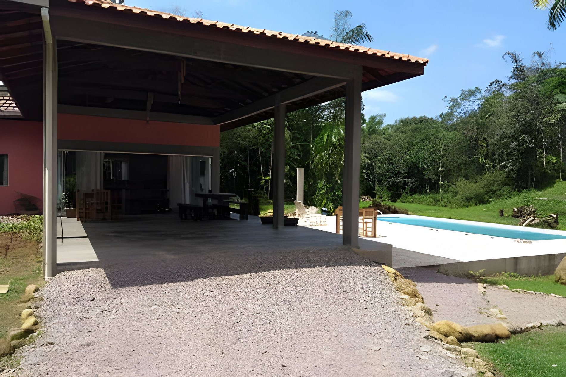 A chácara conta com um chalé que também é alugado por temporada, por isso o uso da piscina é compartilhado com outros hóspedes.