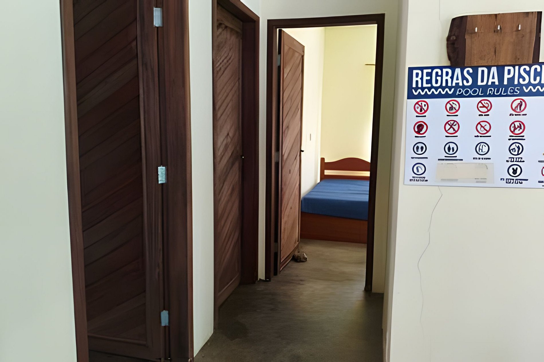 Por segurança, é proibido entrar na piscina com objetos de vidro, objetos duros ou com pets.