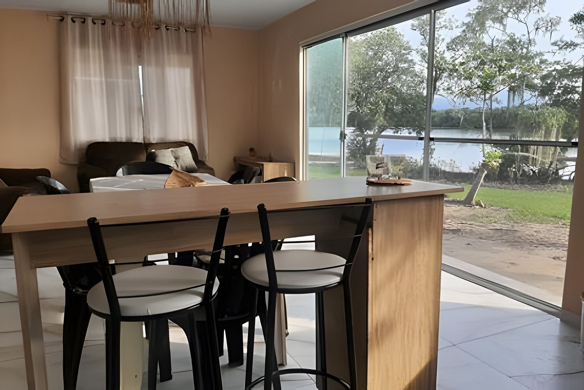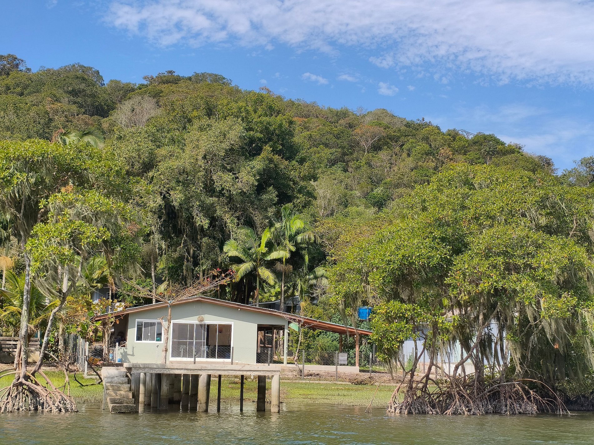 Próximo a casa tem uma lanchonete e a 1km tem uma panificadora. Para chegada a ilha faz-se necessário contratar um barqueiro, tendo saída de Antonina e de Alexandra . O valor do deslocamento até a ilha NÃO esta incluso no valor da diária.