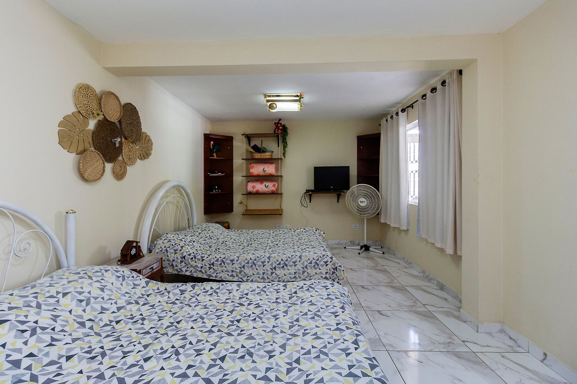 A casa conta com 5 quartos, sendo 3 na casa superior e 2 na parte térrea, com capacidade para acomodar até 20 pessoas. Para garantir o máximo de privacidade e conforto, os quartos do térreo só serão disponibilizados caso o número de hóspedes pagantes ultrapasse 8 pessoas (capacidade da casa superior).