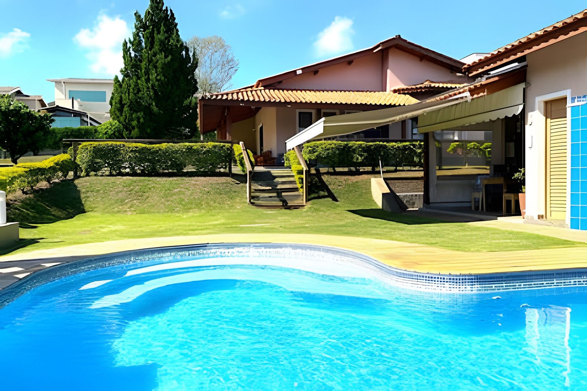 - Ao fazer a reserva, é obrigatório o envio de nome completo, data de nascimento e número do RG de todos os hóspedes para acessar o condomínio; - Não é permitido receber pessoas que não estejam previstas na reserva e nem a realização de festas no nosso espaço; - A casa conta com 4 suítes, e 3 delas estarão disponíveis durante a estadia. Uma suíte permanece trancada para uso pessoal dos proprietários, sem interferir na experiência dos hóspedes. - Proibido fumar na área interna da casa; - Proibido som alto em qualquer horário do dia. Após as 22h e antes das 8h, tenha ainda mais respeito por nossos vizinhos; - Proibido a utilização de equipamentos de karaokê; - Não use utensílios cortantes ou de vidro na área da piscina; - Proibido colocar cadeiras ou espreguiçadeiras dentro da piscina; - Não é permitido que os pets utilizem a piscina.