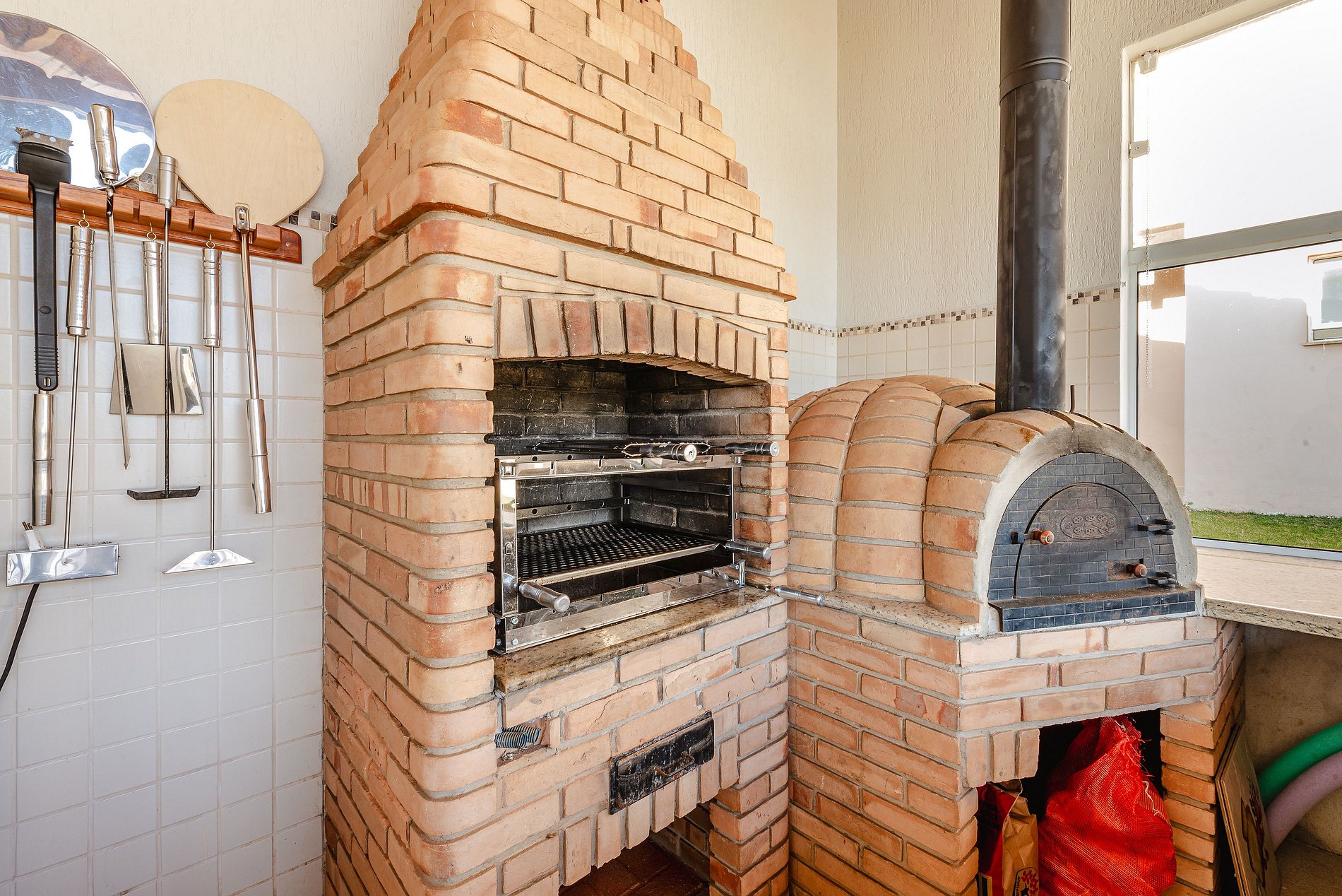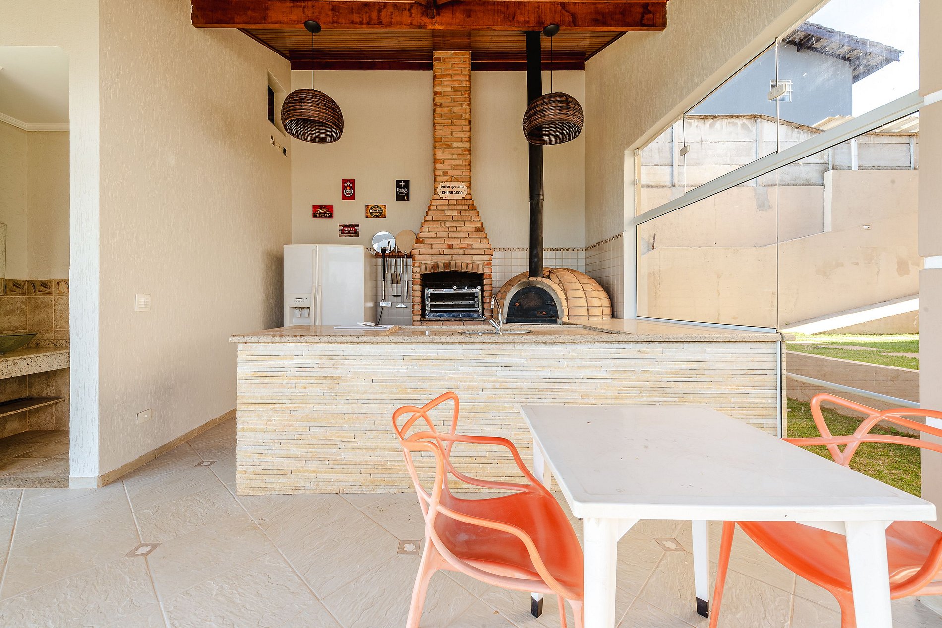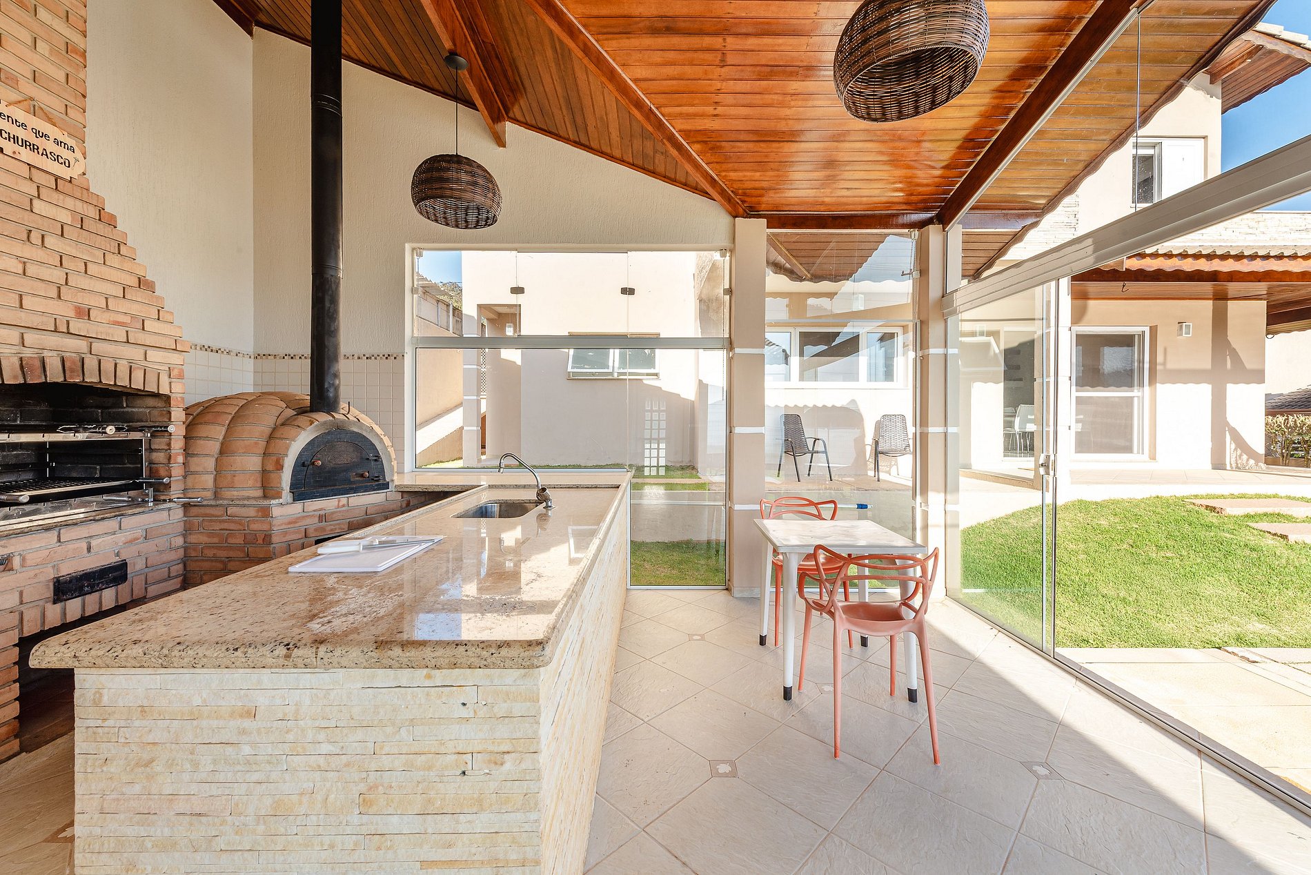 - Área gourmet completa com churrasqueira e forno de pizza