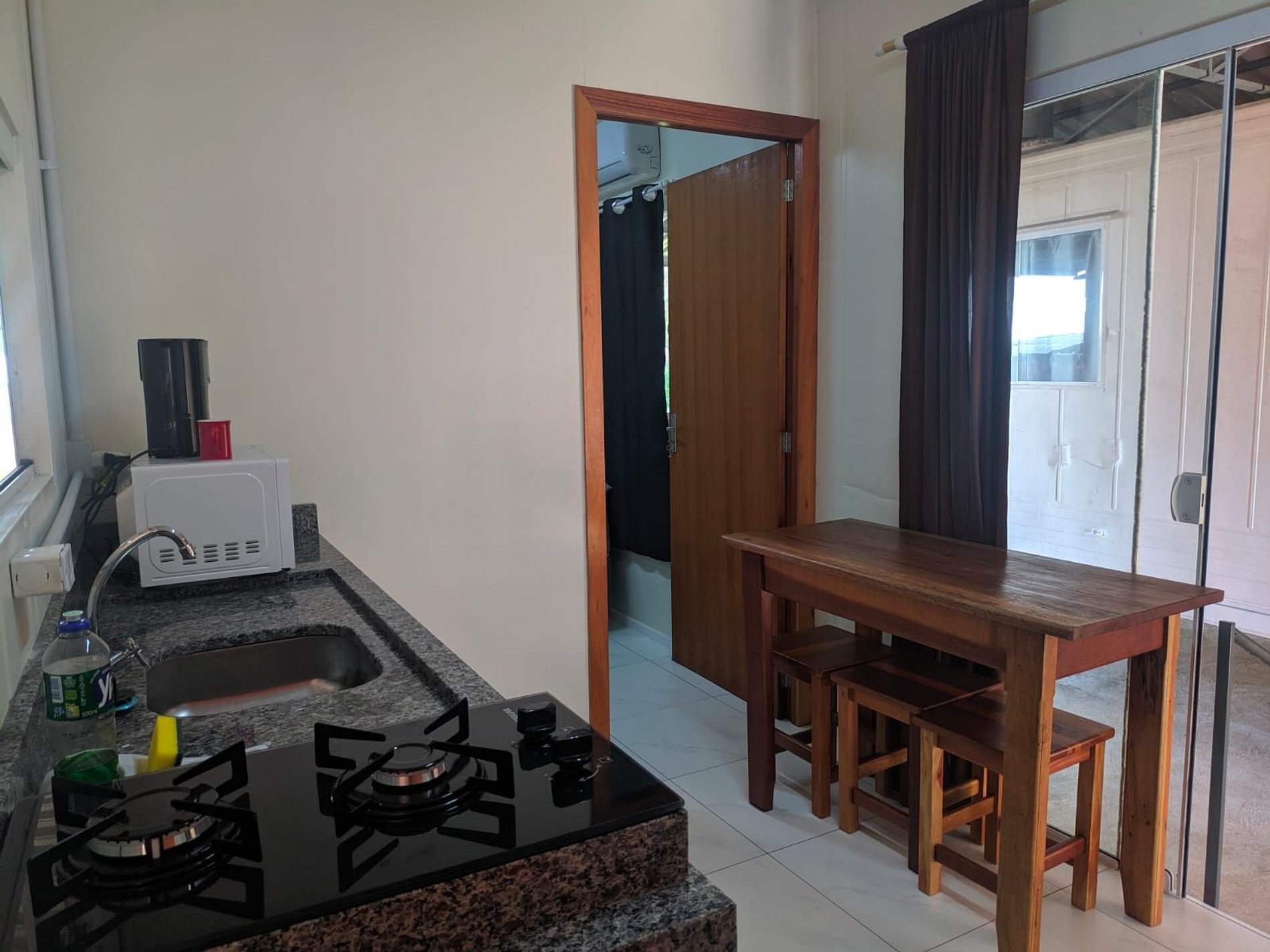 Cozinha Completa: A cozinha está equipada com tudo o que você precisa para preparar suas refeições, incluindo micro-ondas, fogão e frigobar.