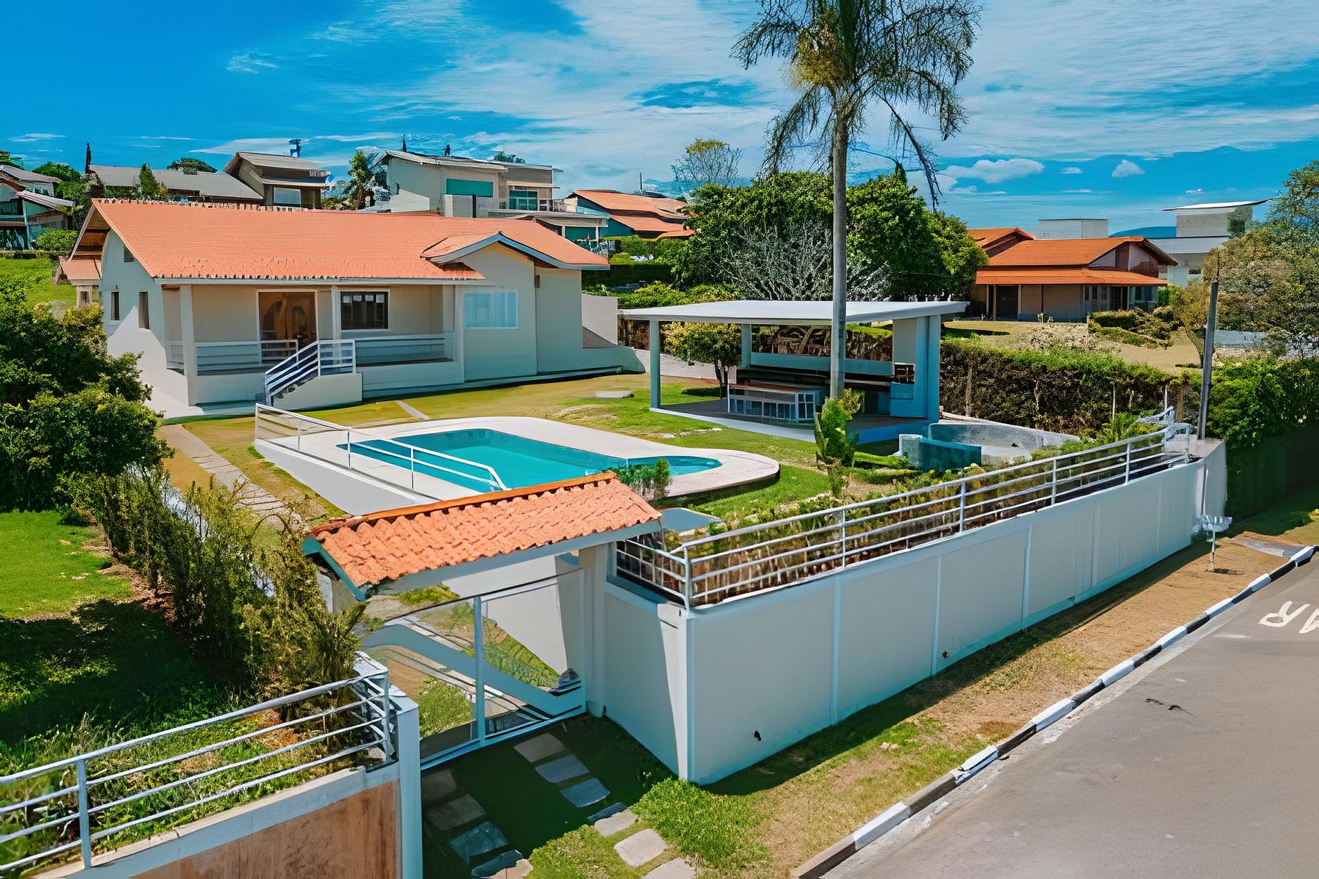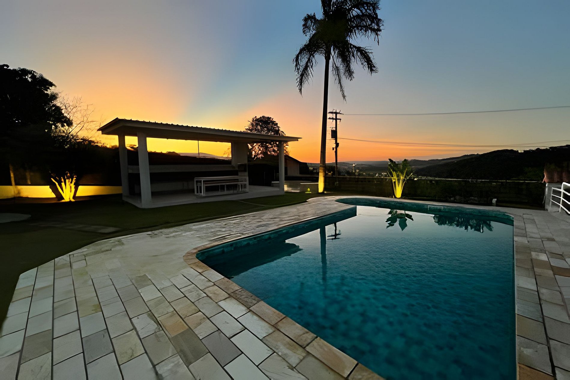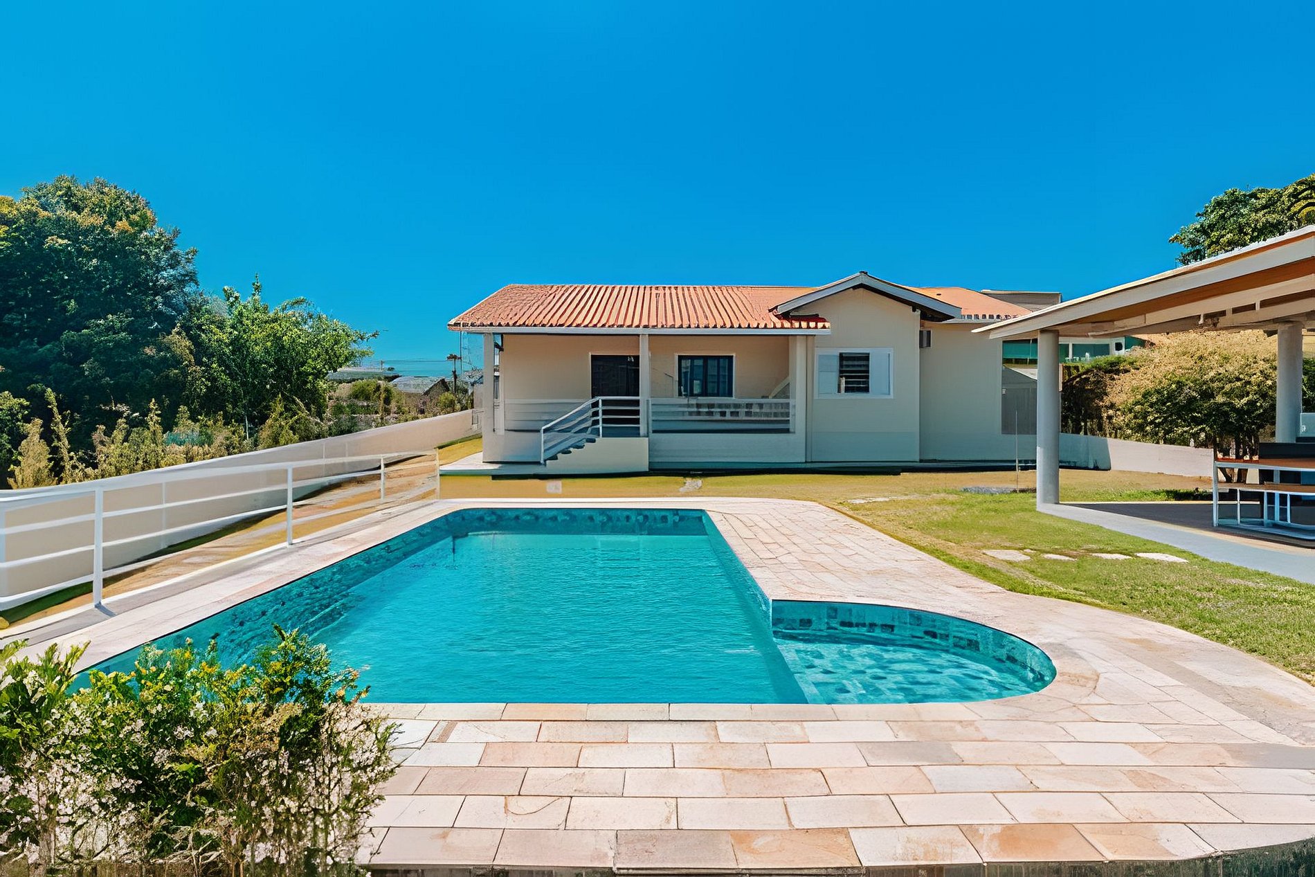 Destaques: - Piscina - Área gourmet com churrasqueira - Fogo de chão - Ar condicionado na Suíte e na Sala de TV/Jantar - Cozinha completa - Internet fibra com Wi-fi