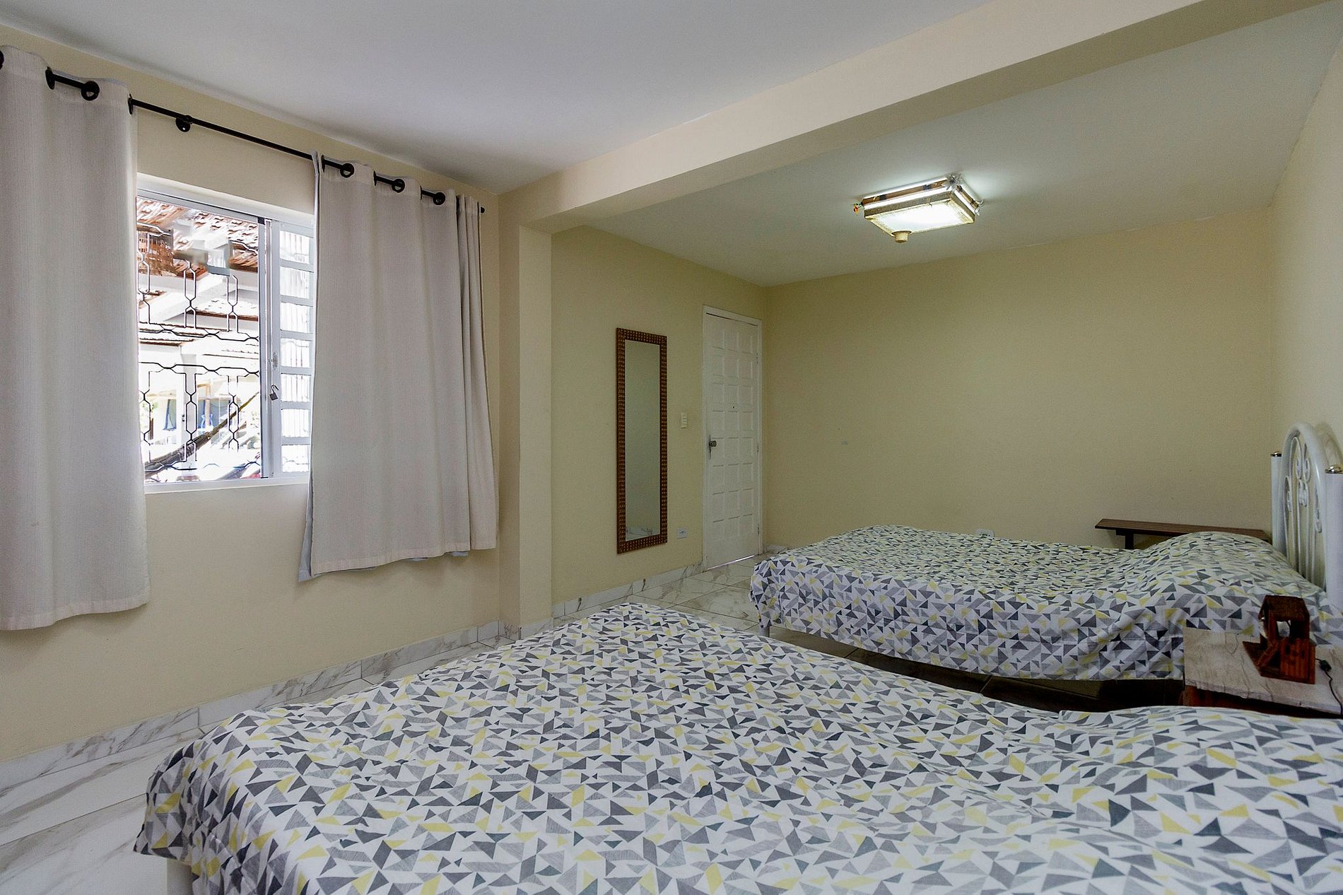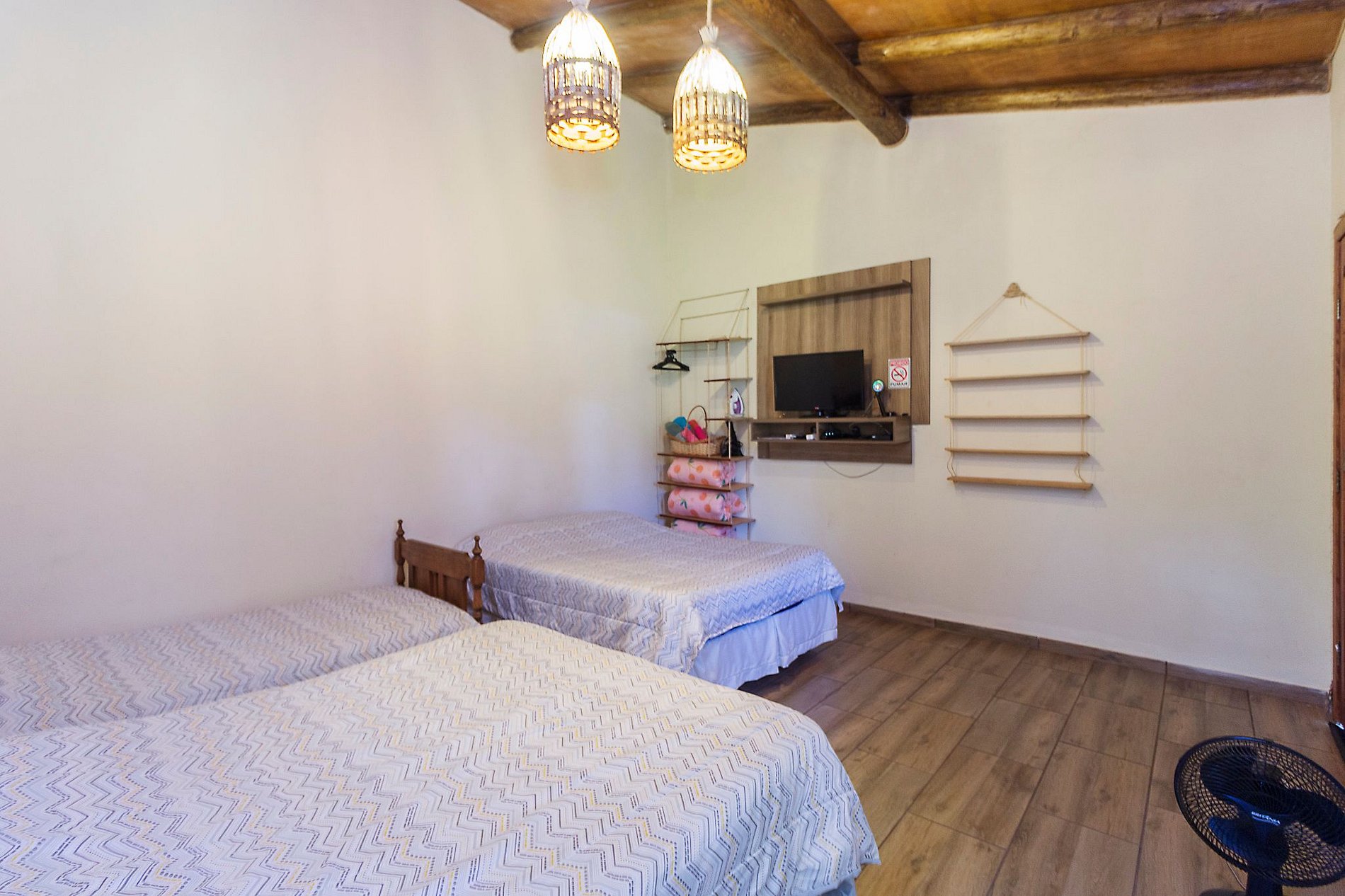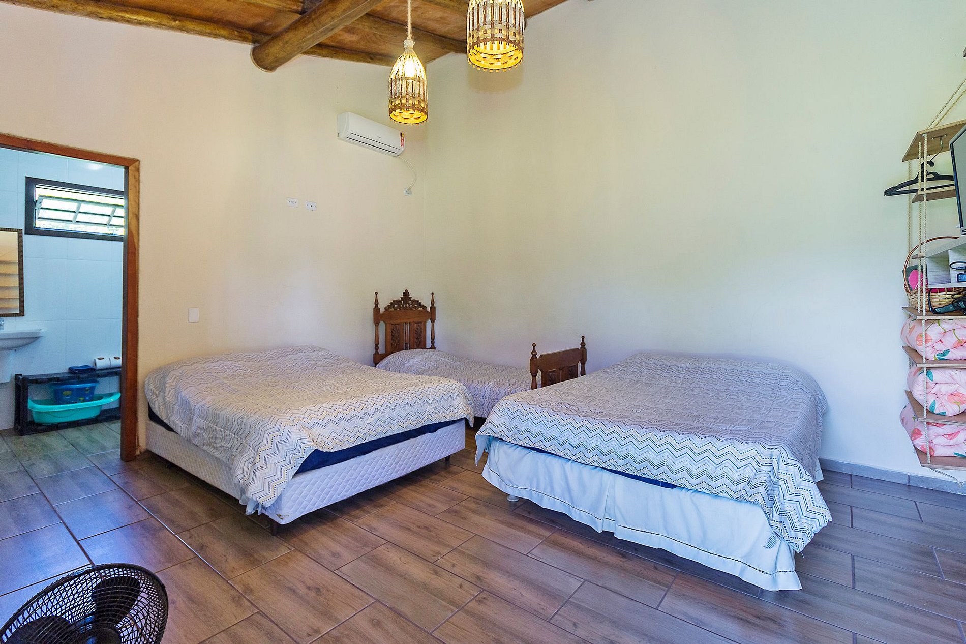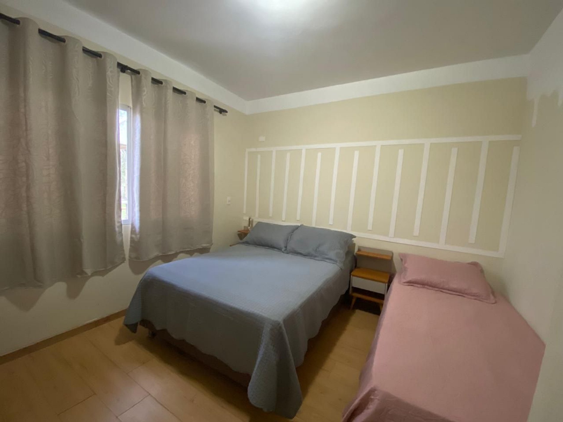 A casa conta com 5 quartos, sendo 3 na casa superior e 2 na parte térrea, com capacidade para acomodar até 20 pessoas. Para garantir o máximo de privacidade e conforto, os quartos do térreo só serão disponibilizados caso o número de hóspedes pagantes ultrapasse 8 pessoas (capacidade da casa superior).