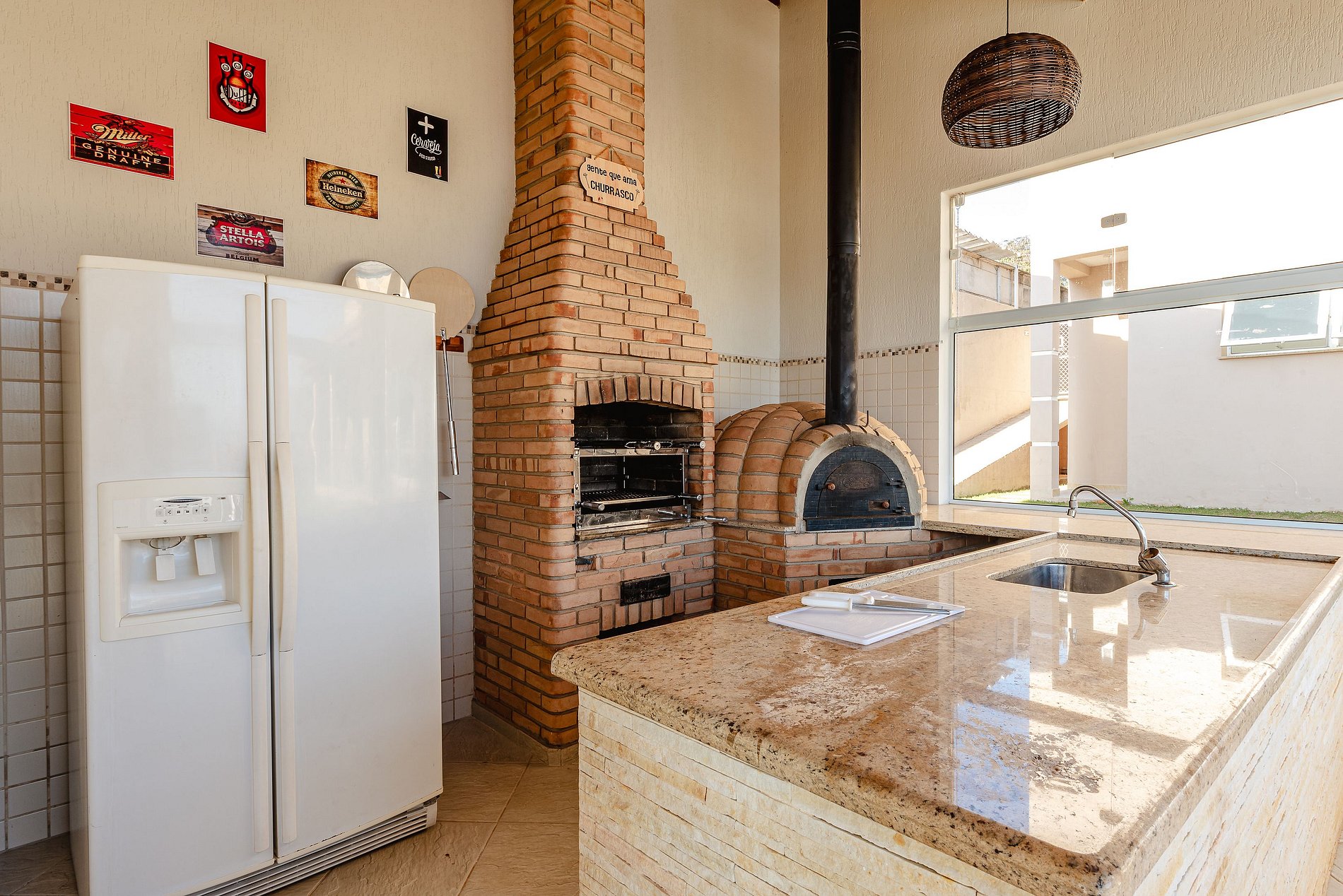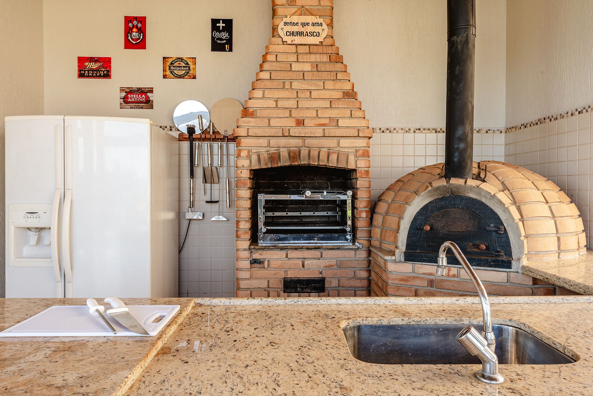 - Área gourmet completa com churrasqueira e forno de pizza